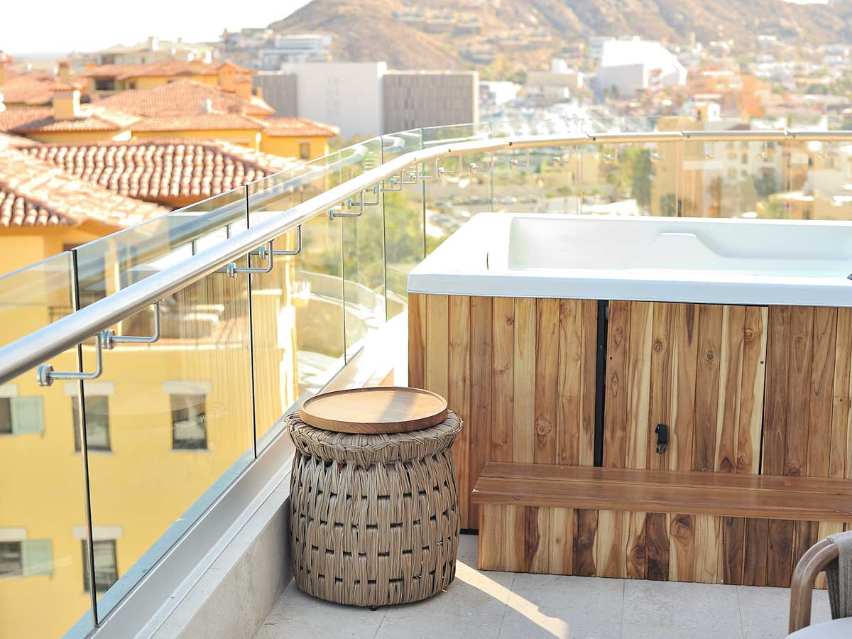 Corazón Cabo Resort & Spa is a four-star, luxury beachfront resort perched directly on Medano Beach in Cabo San Lucas, offering unparalleled access to the only swimmable shoreline in the area, plus vibrant downtown attractions just steps away. Guests can delight in two oceanfront infinity pools, the city's highest rooftop bar—Rooftop 360—Cabo’s only micro‑brewery, and a buzzing beach club featuring private cabanas, a DJ, and full-service dining right on the sand. The resort also offers a full spa (“Sparitual”), a modern fitness center, pet‑friendly accommodations, and well-equipped luxury suites with features like kitchenettes, balcony hot tubs, and stylish décor inspired by Mexico’s rich history